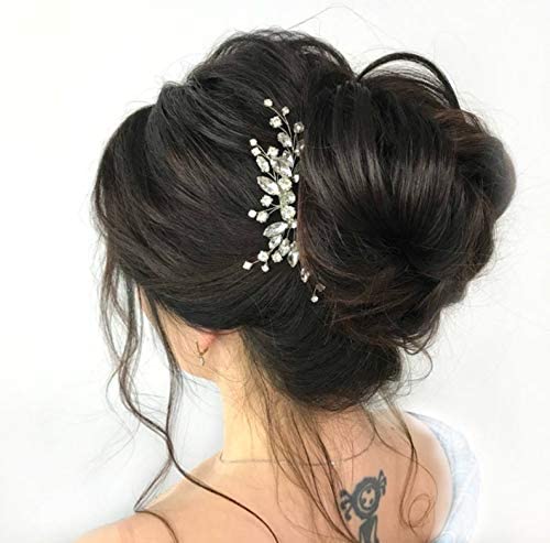 JAKAWIN Crystal Bride Wedding Hair Comb Silver Bridal Headpiece Rhinestone Hair Piece Accessories for Women HC113 (Silver)