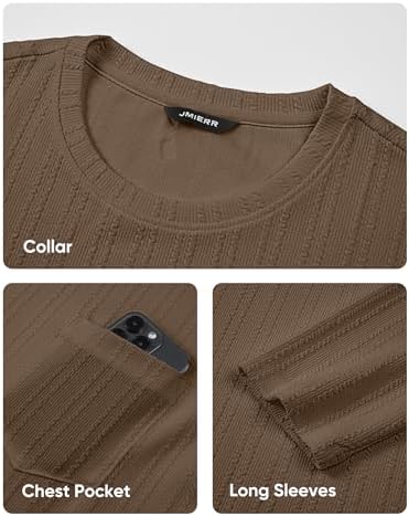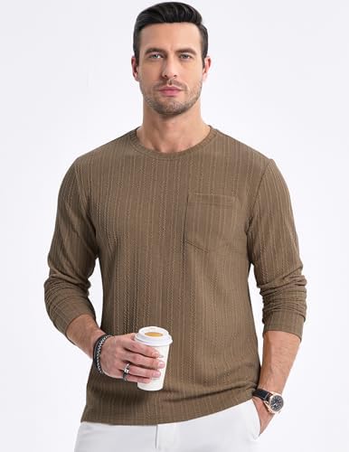 Sponsored Ad - Men's Long Sleeve Shirts Casual Crewneck Pullover T-Shirt Stretch Textured Knit Tee with Pocket