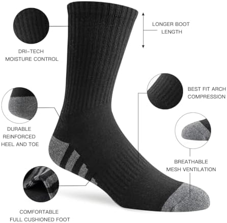 Sponsored Ad - 8 Pairs Mens Crew Work Cushion Socks Long Athletic Running Socks Workout Breathable Socks