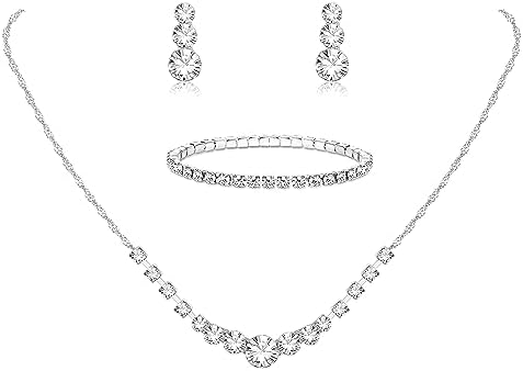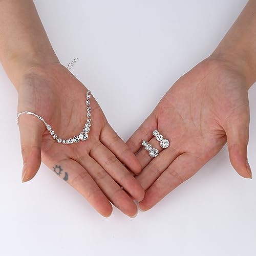 Sponsored Ad - Jstyle Silver Plated Jewelry Set for Women Rhinestone Crystal Necklace Drop Earrings Link Bangle Bracelet Bridal Wedding Jewelry Sets for Brides Bridemaid Prom Costume Accessories