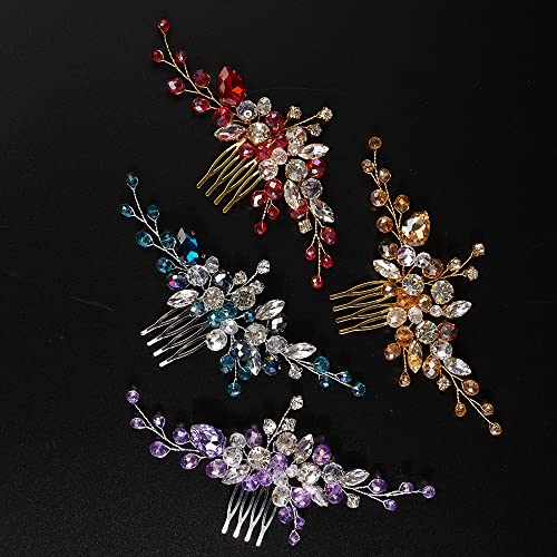 JWICOS Crystal Bride Wedding Hair Comb Rhinestone Bridal Hair Clip Glitter Wedding Hair Accessories for Women and Girls (Purple)