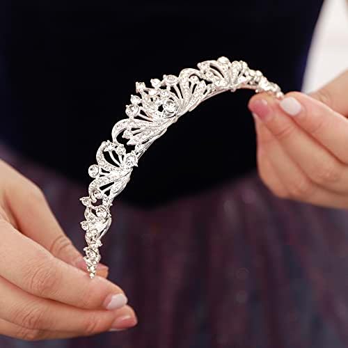 JWICOS Silver Wedding Tiara for Women Princess Crowns and Tiaras for Bride Rhinestone Birthday Crown Headband Crystal Costume Party Prom Hair Accessories