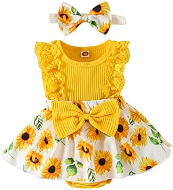 Baby Girl Clothes Newborn Romper Dress Infant Lace Ruffle Sleeveless Summer Outfits with Headband 0-12 Months
