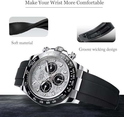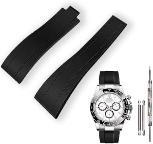 20mm Rubber Watch Band for Rolex Submariner, Daytona, Ghost, Yachtmaster & More – Waterproof, Unisex Design, No Clasp Included-Black
