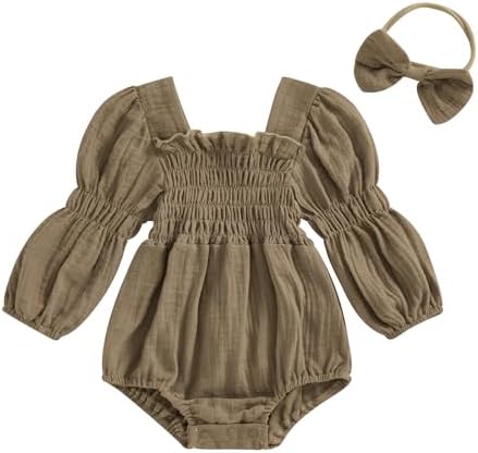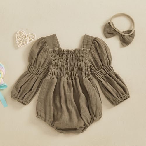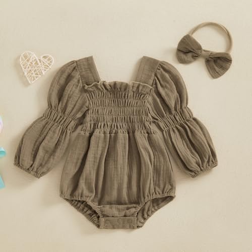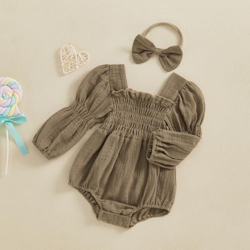 Smocked Baby Girl Clothes Newborn Girl Bubble Romper Long Sleeve Jumpsuit And Headband Outfit Cute Infant Clothing