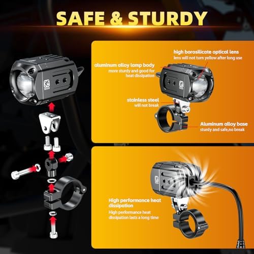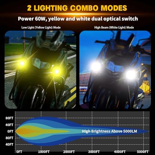 Sponsored Ad - Motorcycle Auxiliary LED Light Kit Driving Spotlights White/Amber Fog Light with Mount Brackets Wire Harness Waterproof 60W Offroad Work Lights Compatible with Motorcycle J-eep Car Truc