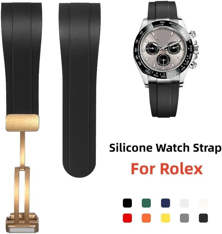 Sponsored Ad - 22mm Curved End Rubber Watchband for Rolex Submariner DAYTONA GMT Yacht-Master Silicone Strap Black Watch Band Sports Bracelet