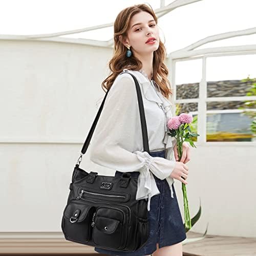 Large Purses for Women Shoulder Bag Tote Handbags Stylish Vegan Leather Hobo Bags Ladies, A-Black-4