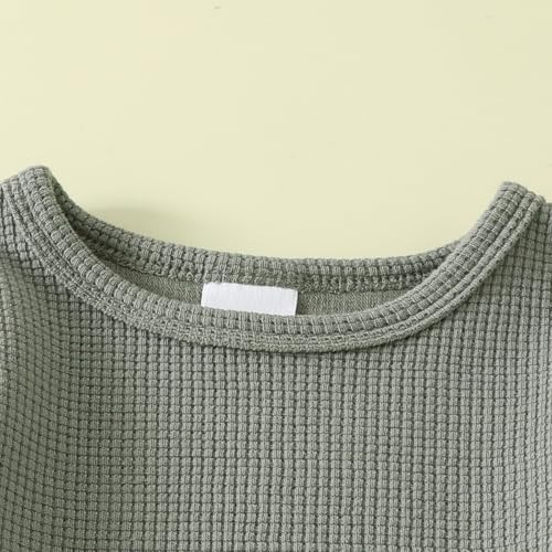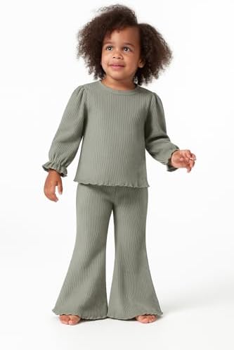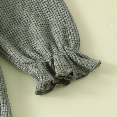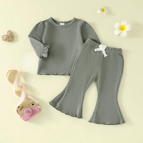 Sponsored Ad - Baby Girl Fall Outfit Toddler Girl Winter Clothes Baby Lantern Sleeve Top and Flared Pant 2-Piece Waffle Clothing Set