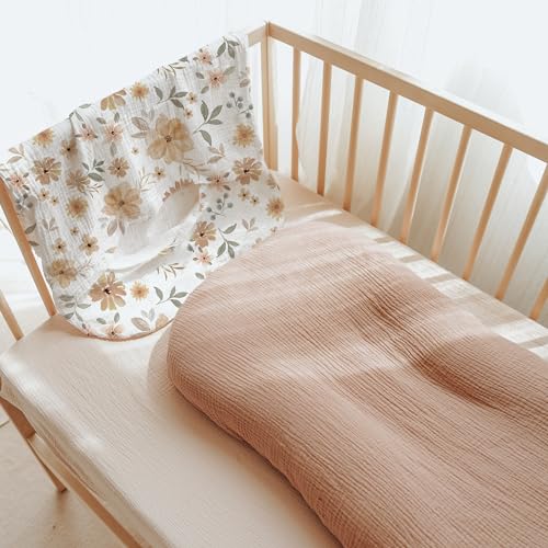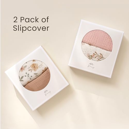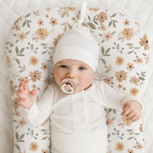 Konssy Muslin Baby Lounger Cover 2 Pack, 100% Cotton Newborn Lounger Cover, Soft and Breathable Baby Nest Slipcover for Boys Girls (Peach, Flowers)
