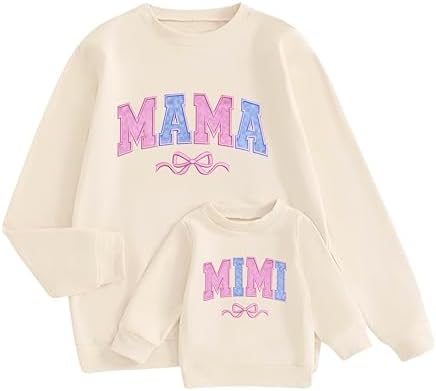 Mommy and Me Matching Outfits Crewneck Long Sleeve Pullover Tops Cute Family Matching Shirt
