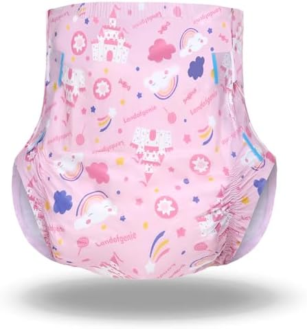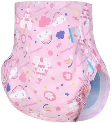Adult Diapers Pink Printed Diaper Incontinence Underwear Large Overnight Diapers with Tabs 10 Pieces (Medium 28"-38")