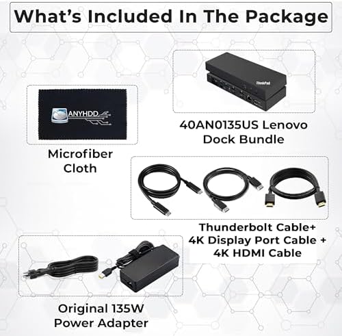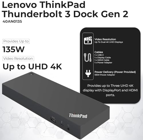 Sponsored Ad - Lenovo 40AN0135US Dock 135W Bundle - Gen 2 Dual UHD 4K Display with 135W Power Adapter + 4K HDMI Cable + 4K DisplayPort Cable + Thunderbolt Cable + Microfiber Cloth - Lenovo Docking Sta