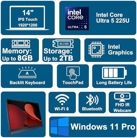 Sponsored Ad - IdeaPad Flex 5i 2-in-1 Laptop 14" WUXGA Touch Intel 12-core Ultra 5 225U (Beats Core 7 150U) 8GB RAM 512GB SSD Backlit for Creator Designer Business Professional Win11Pro ICP Hub/Copilo
