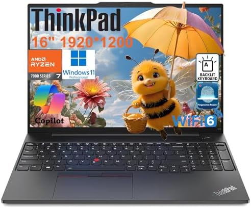 ThinkPad E16 Gen 2 Business Laptop Computer, AMD 8-Core Ryzen 7 7735HS (Beat i7-1355U), 32GB DDR5 RAM, 1TB PCIe SSD, 16" FHD+, WiFi 6, Backlit KB, Fingerprint Reader, Windows 11 Pro, Vent-Hear