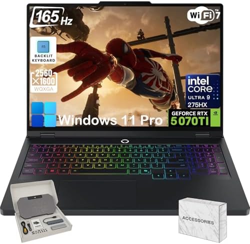 Legion Pro 5i Gen 10 Gaming Laptop 2025, GeForce RTX 5070 Ti, Intel 24 Core Ultra 9 275HX, 32GB RAM, 2TB SSD, 16" 2.5K OLED 165Hz Display, Win 11 Pro, Wi-Fi 7, 24zone RGB Backlit, w/Accessories