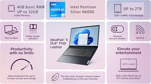 Sponsored Ad - IdeaPad 15.6 Inch Laptop | Intel Pentium Silver N6000, Quad-Core Processor | 12GB RAM, 128 Emmc + 512GB SSD | Intel UHD Graphics | Windows 11 | Abyss Blue | 1-Year Microsoft 365 | WiFi-