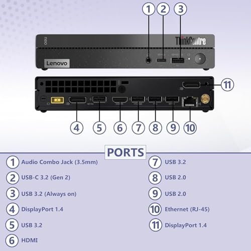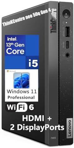 ThinKCentre neo 50q Gen 4 Tiny 1L Business Mini Desktop Computer, 13th Gen Intel 8-Core i5-13420H (Beat i7-1355U), 16GB DDR4 RAM, 512GB PCIe SSD, 2 DisplayPorts, WiFi 6, Win 11 Pro, Vent-Hear