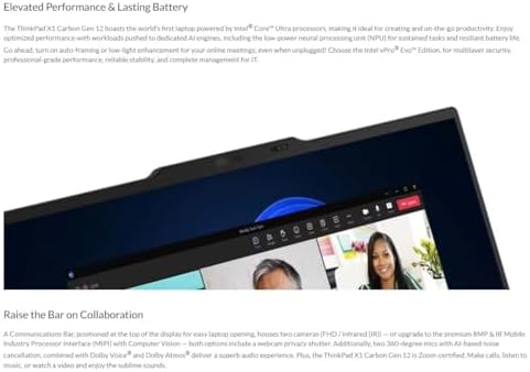 Gen 12 ThinkPad X1 Carbon Laptop with Intel Ultra 7 155U Processor, 14" WUXGA 100% sRGB Non-Touch Display, 32GB 6400MHz RAM, 512GB Gen4 Performance SSD, FHD+ IR+ RGB Camera, and Windows 11 Pro