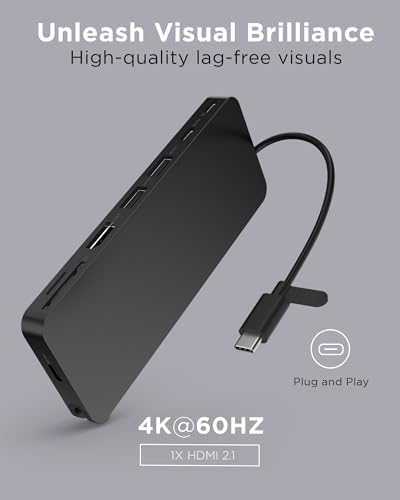 Lenovo USB-C Slim Travel Dock, 8 Ports, Up to 65W PD Pass Through, Integrated USB-C Cable, 4K Display Support, Black