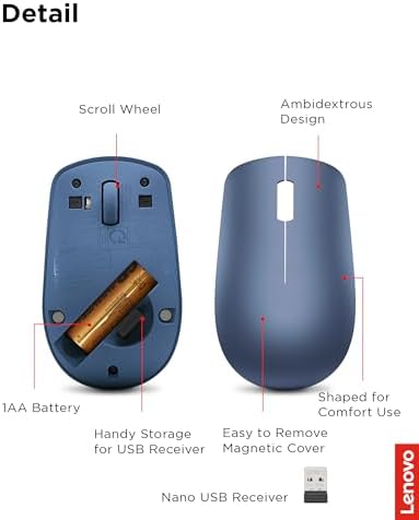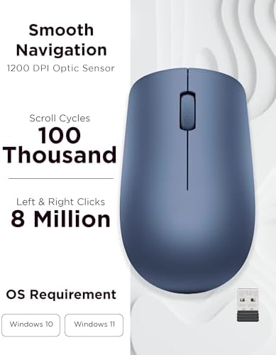 530 Wireless Mouse with Battery, 2.4GHz Nano USB, 1200 DPI Optical Sensor, Ergonomic for Left or Right Hand, Lightweight, GY50Z18986, Abyss Blue