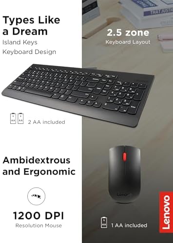 510 Wireless Keyboard & Mouse Combo, 2.4 GHz Nano USB Receiver, Full Size, Island Key Design, Left or Right Hand, 1200 DPI Optical Mouse, GX30N81775, Black