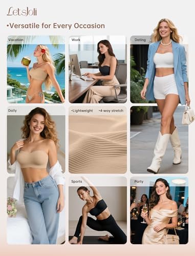 Push Up Strapless Bras for Women Supportive Bandeau Bra Non Slip Wireless No Underwire Padded Tube Bra