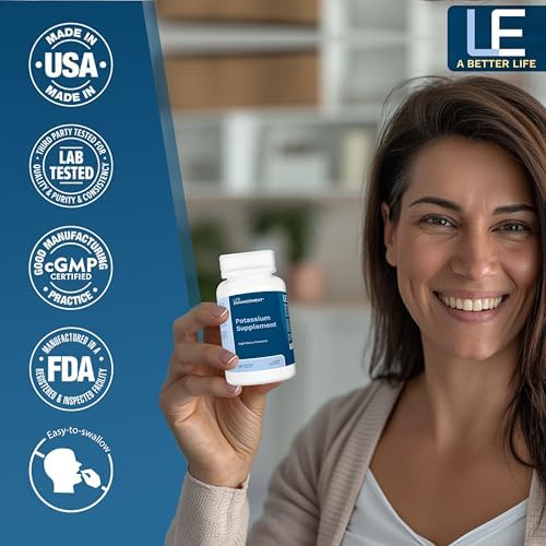 Life Enhancement High Absorption Potassium Supplement for Muscle, Brain & Bone Health - No Additives High Potency Elemental Potassium Supplement is Made in USA (240 Capsules – 120 Servings)