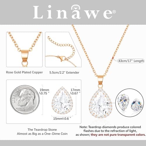 Linawe Crystal Chain Necklace for Women Trendy, Imitation Diamond Pendant, Statement Cubic Zirconia Boho Jewelry Set, 14K Gold/Rose Gold/Silver Birthstone Necklace