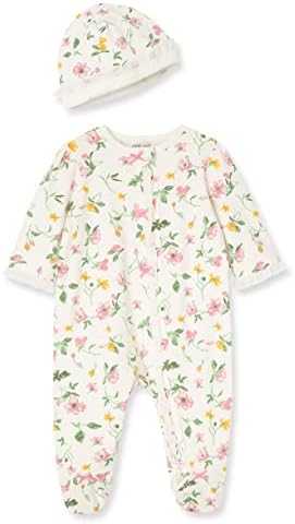 Sponsored Ad - Little Me Clothes for Baby Girls 100% Cotton Scratch-Free Tag Footed One-Piece Romper and Hat Sleeper Set Preemie to 9 Months