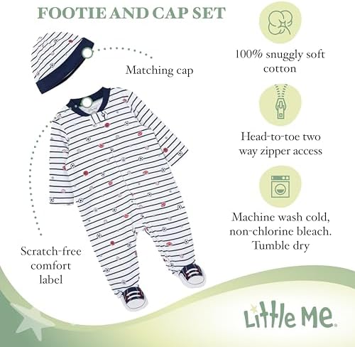 Little Me Clothes for Baby Girls' 100% Cotton Scratch-Free Tag Footie Sleeper, Preemie to 9 Months