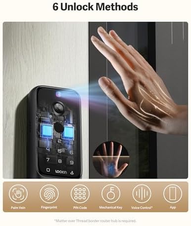 Sponsored Ad - Veno Plus Smart Lock with 2K 180° Security Camera & Video Doorbell, AI Local Storage, Palm Vein/Fingerprint Keyless Entry Door Lock, Smart Locks for Front Door Bulit in Wi-Fi, App Contr