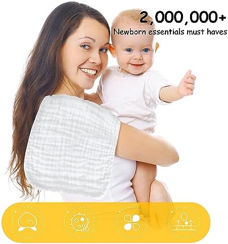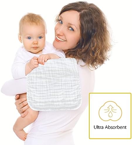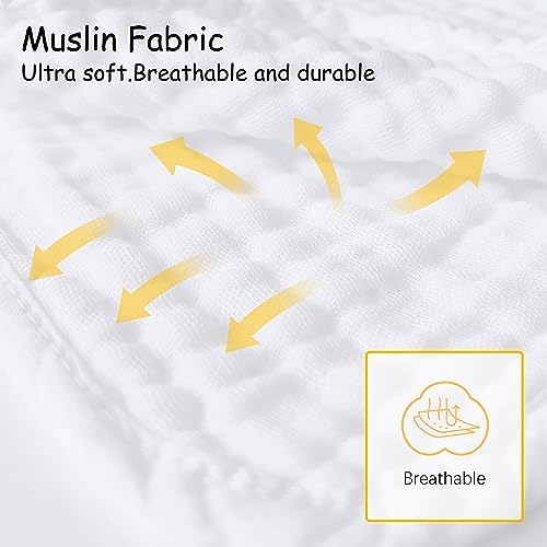 12 Pack Muslin Burp Cloths 100% Cotton Muslin Cloths Large 20''x10'' Extra Soft and Absorbent Baby Burping Cloth - White
