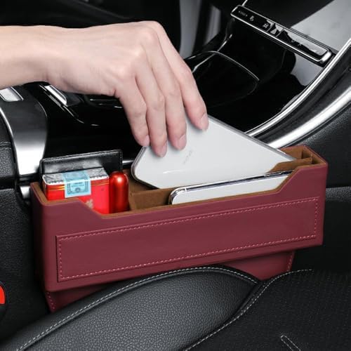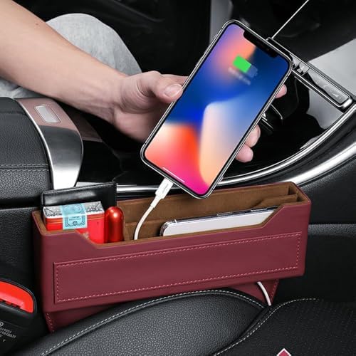 Car Seat Storage Box for Rolls-Royce Phantom Ghost Cullinan Wraith Dawn Series Car Seat Gap Organizer Seat Side Bag Reserved Charging Cable Hole Car Accessories,Red