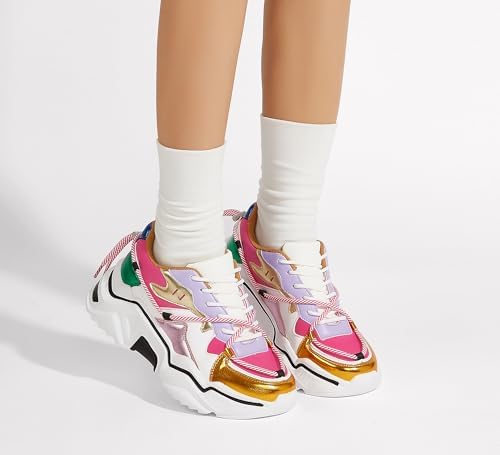 Sponsored Ad - Women's Platform Colorful Fashion Sneakers Retro Colorblock Stylish Cute Chunky Dad Walking Shoes