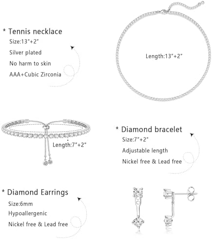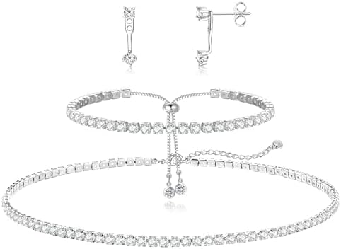 Sponsored Ad - Luxval Tennis Necklace Set for Women Tennis Bracelets Diamond Earrings Sterling Silver Necklace Wedding Jewelry for Bride Silver Jewelry Sets for Women Gift