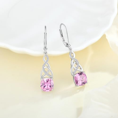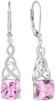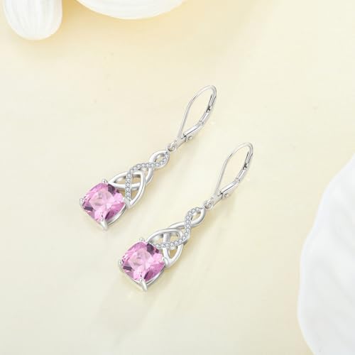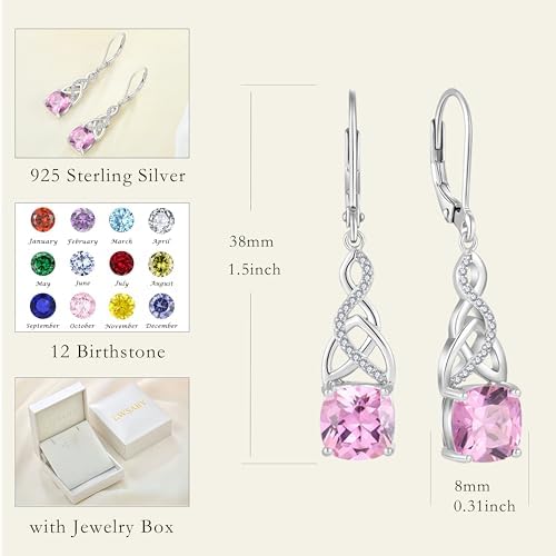 Sponsored Ad - Infinity Celtic Knot Dangle Drop Earrings 925 Sterling Silver Princess Cut Leverback Earrings with Birthstone Irish Jewelry Gifts for Women
