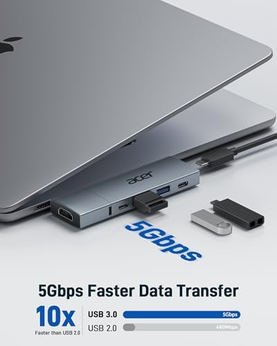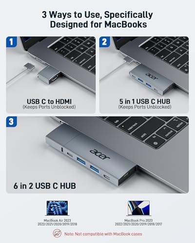 USB C Hub for MacBook Pro/Air M1 M2 M3, 6 in 2 Detachable 4K@60Hz USB C to HDMI Adapter with 2 USBA & 2 USBC 3.0 Data Ports, 100W PD Charging, USBC to USB Dongle Adapter