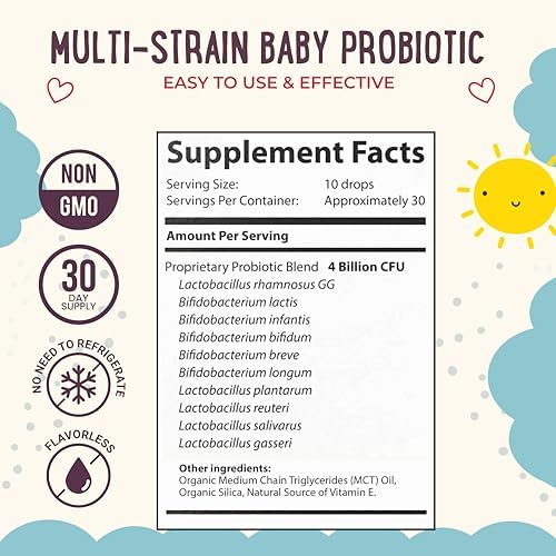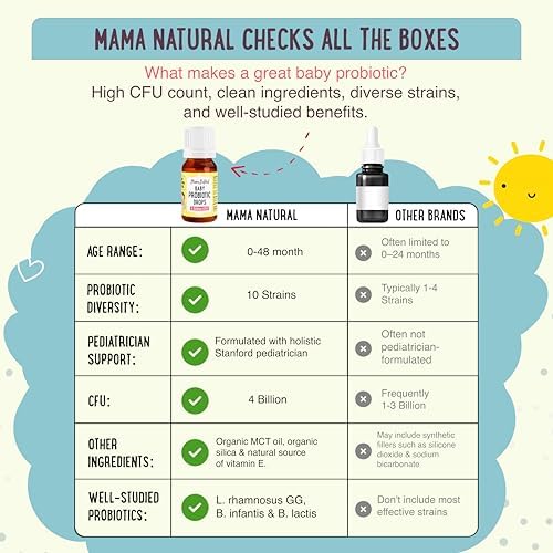 Mama Natural Baby Probiotic Drops | Pediatrician-Approved Infant Probiotic Colic Drops – Infant Gas, Constipation, Fussiness & Immune Support Supplement – 10 Strains & 4 Billion CFU with MCT Oil