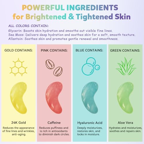 Under Eye Patches Variety Pack (48 Pairs), Eye Masks for Dark Circles Puffy Eyes Undereye Bags With 8 Colors (6 Pairs/Color), Vegan Eye Skin Care Set for Bachelorette Party Favors