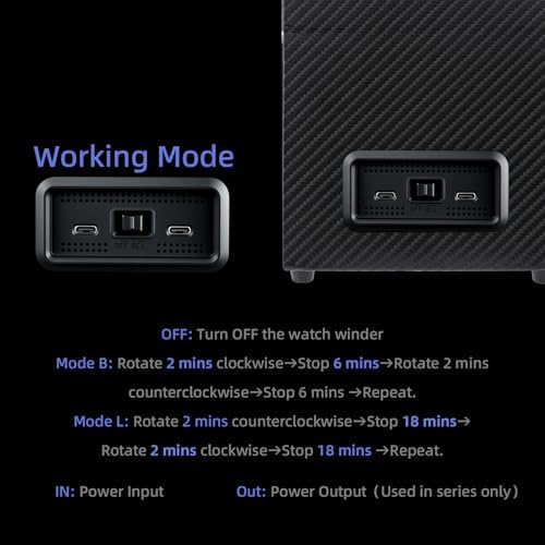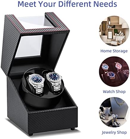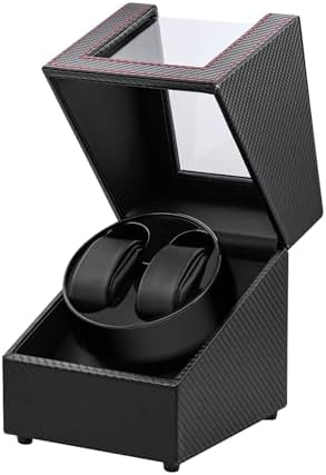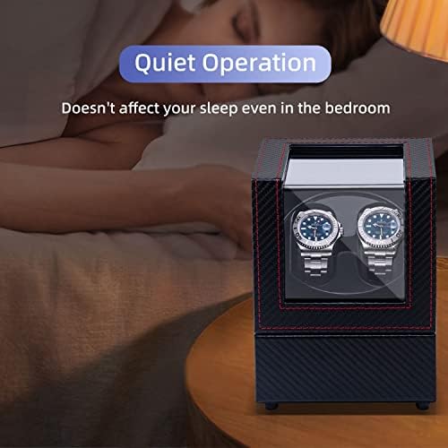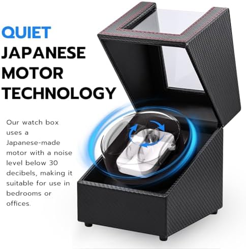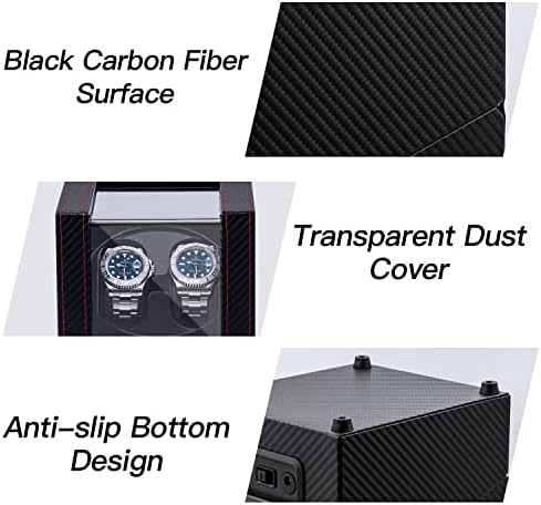 Mcbazel Watch Winder for Automatic Watches, Double Automatic Watch Winder Box with Quiet Japan-made Motor, 2 Slots Watch Display Storage Rotation Wrist watch Box (Black Carbon Fiber Leather)