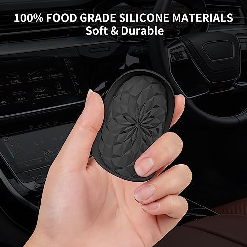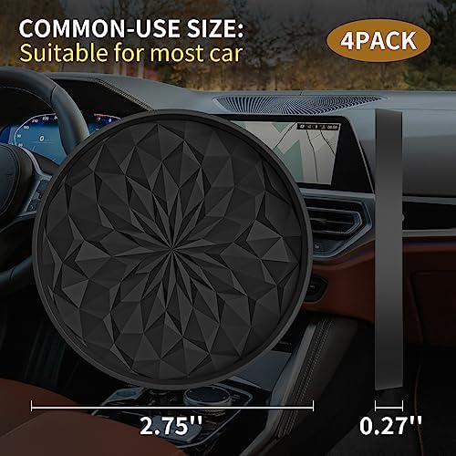 Sponsored Ad - ME.FAN Car Coasters for Cup Holders [4 Pack] - 2.75In Silicone Auto Mug Mats - Universal Non-Slip Recessed Car Interior AccessoriesBlack