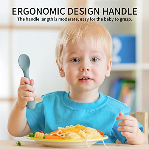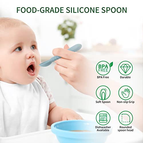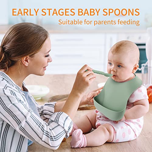 ME.FAN Silicone Baby Feeding Spoons 6 Pack First Stage Infant Spoons - Baby Utensils Soft Training Spoon Self Feeding - Chew Spoon Set for Babies and Toddlers Bright