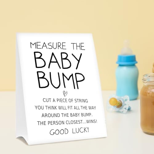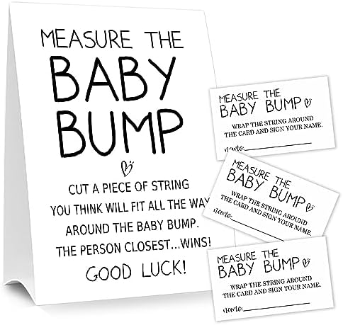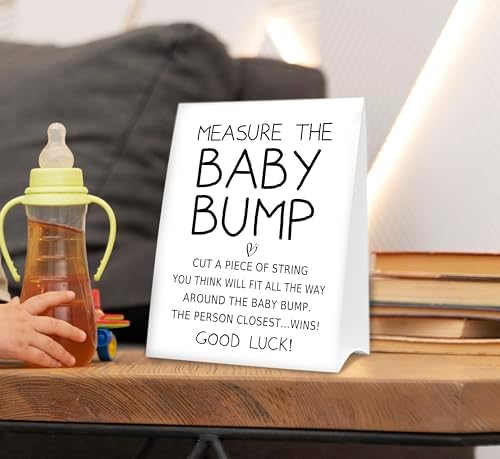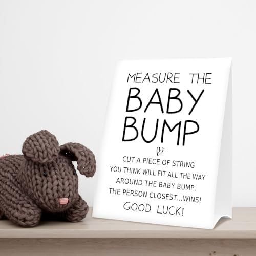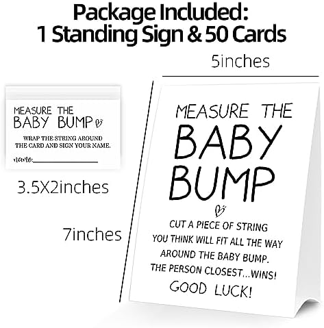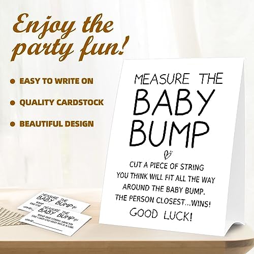 Baby Shower Games Measure the Baby Bump Sign, How Big is Mommy's Belly Party Favors Supplies, 5x7 Inch Kraft Standing Sign and 50 Guessing Cards, Minimalist