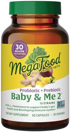 Sponsored Ad - MegaFood Baby & Me 2 Prenatal Prebiotics and Probiotics for Women & Developing Baby with 30 Billion CFU, Vegetarian and Non-GMO, 60 Caps (30 Servings)
