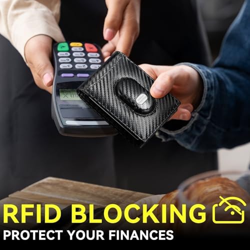 Mens Wallet for Samsung Galaxy SmartTag2: Slim Minimalist Wallet Compatible with Samsung Tracker Tag - RFID Blocking Bifold Leather Wallet with Money Clip