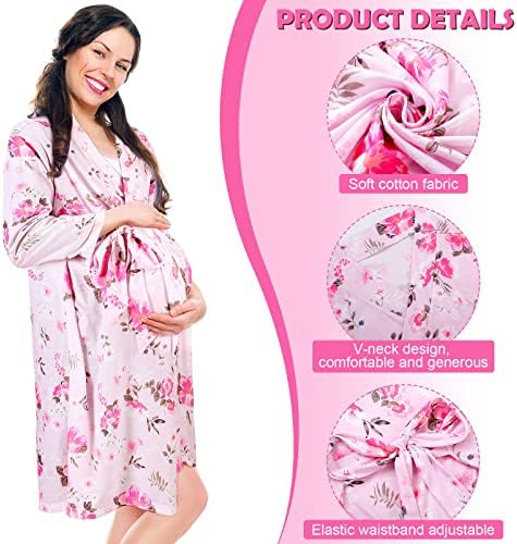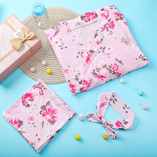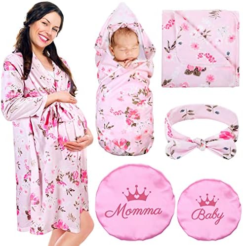 Mepase 5 Pcs Mommy and Me Hospital Matching Outfits Maternity Robe Swaddle Blanket Baby Girl Boys Headband Hat for Mom Baby