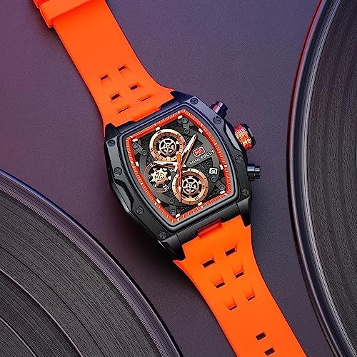 Sponsored Ad - Watch for Men Wristwatch Fashion Hollow Big Dial Luminous Waterproof Sport Analog Quartz Business Chronograph Mens Watches Blue Silicon Strap Dress Watch(0473 Orange)