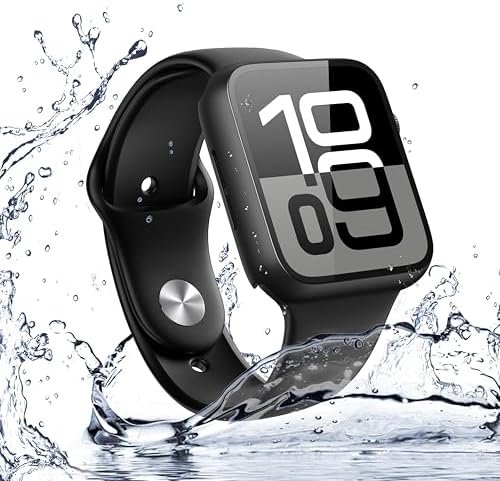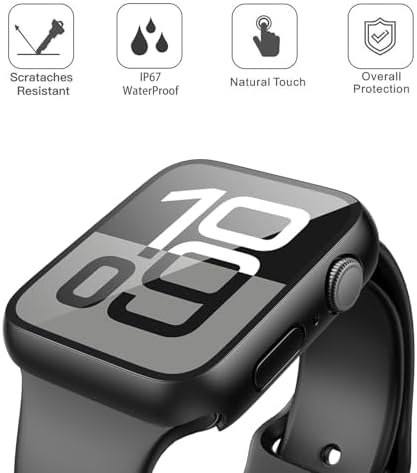 [2 Pack] Waterproof Hard Case with Tempered Glass Compatible with Apple Watch Series 11 (2025) Series 10 46mm, Ultra-Thin Anti-Fall Protective Cover for iWatch Screen Protector, Matte Black