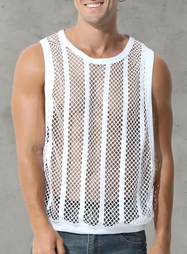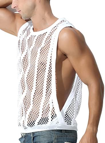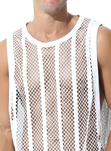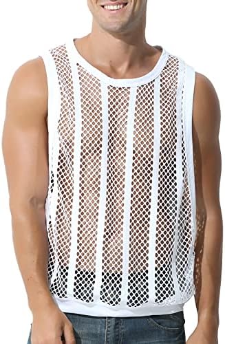 Men's Fishnet Mesh Tank Tops Sexy See Through Workout Vest Sleeveless Sheer Muscle Shirts